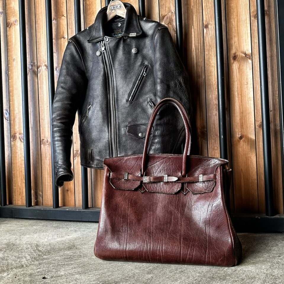 ハンドシュリンク3㎜厚の RUSTED LEATHER(ラステットレザー) を、惜しみなく使用したBAG。