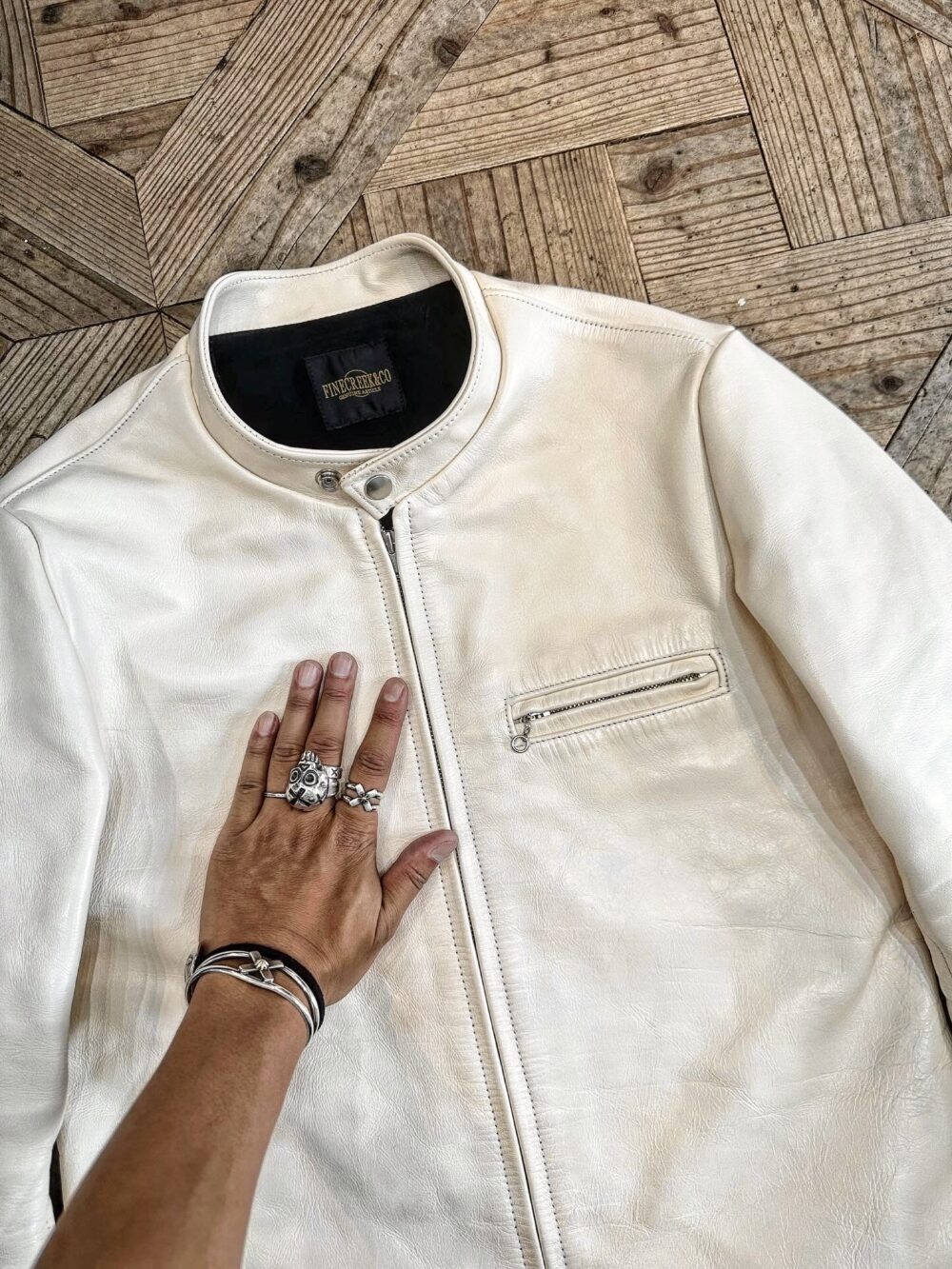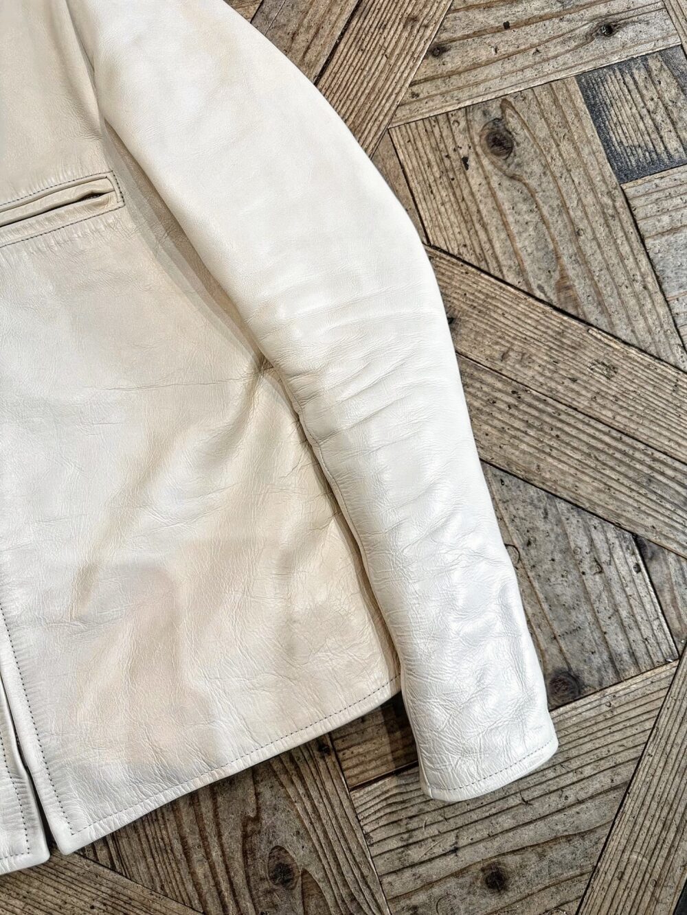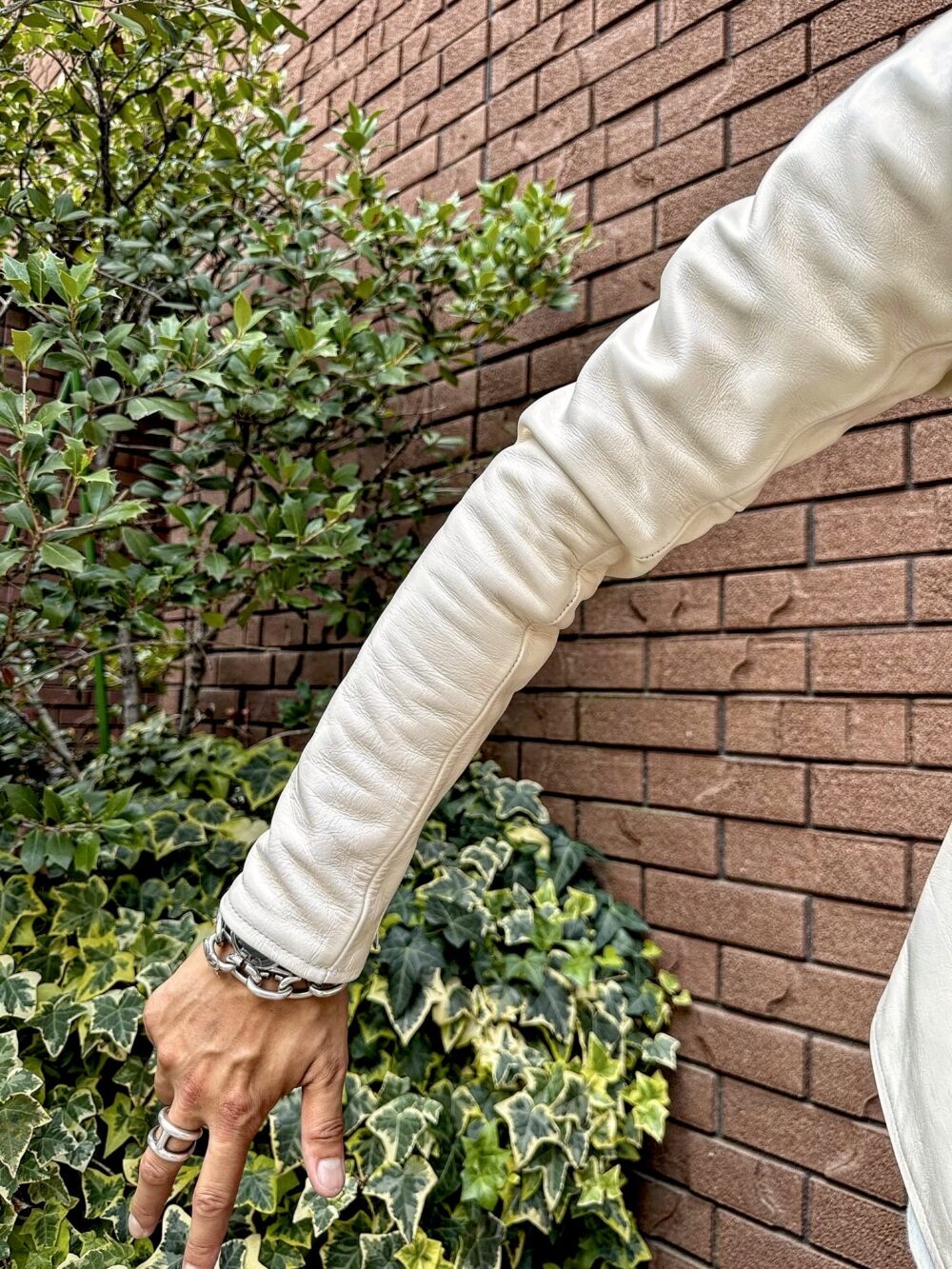 WHITEのレザージャケットは難しいという印象があるかもしれませんが、
