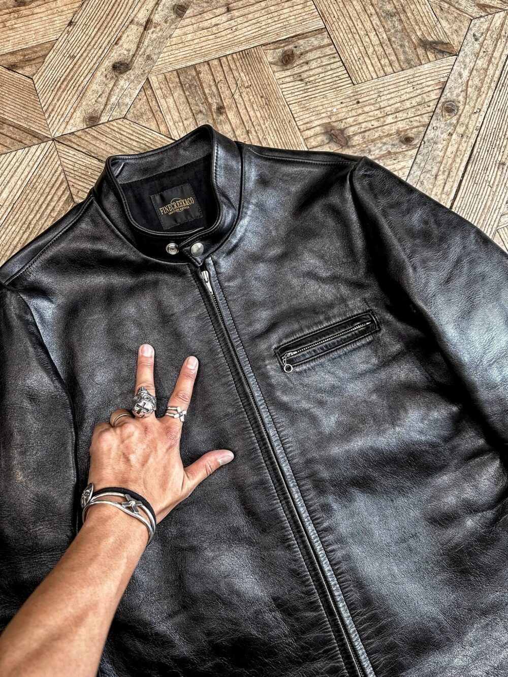 ベースとなるのは 60年代の立ち襟シングルライダース。