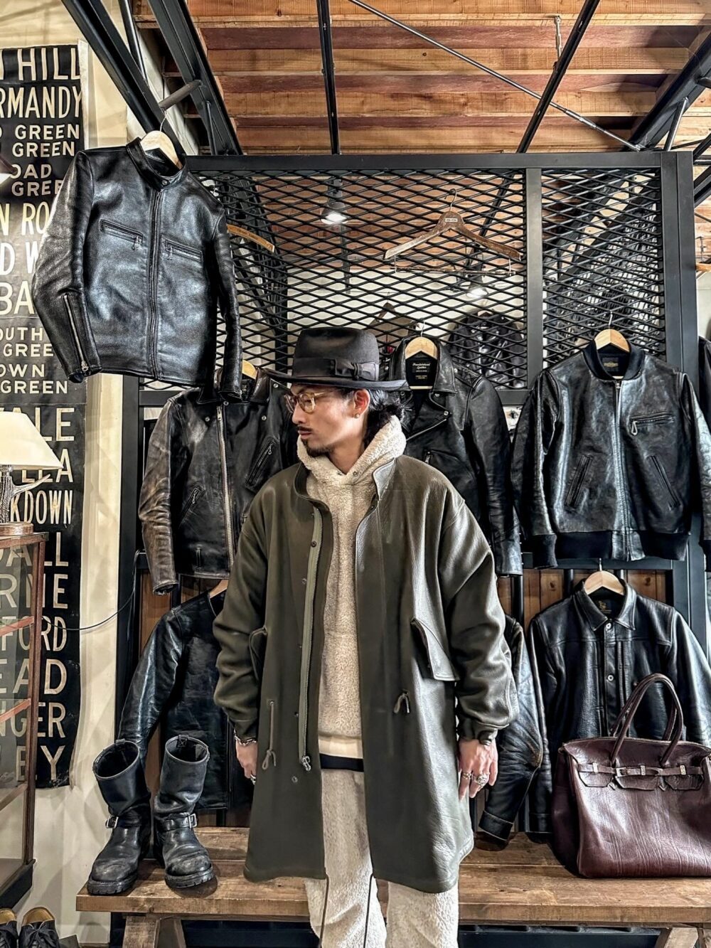 FINE CREEKのレザーM65CWORKS【Ltail / ルテール】Leather M65 fishtailを合わせたスタイル!!