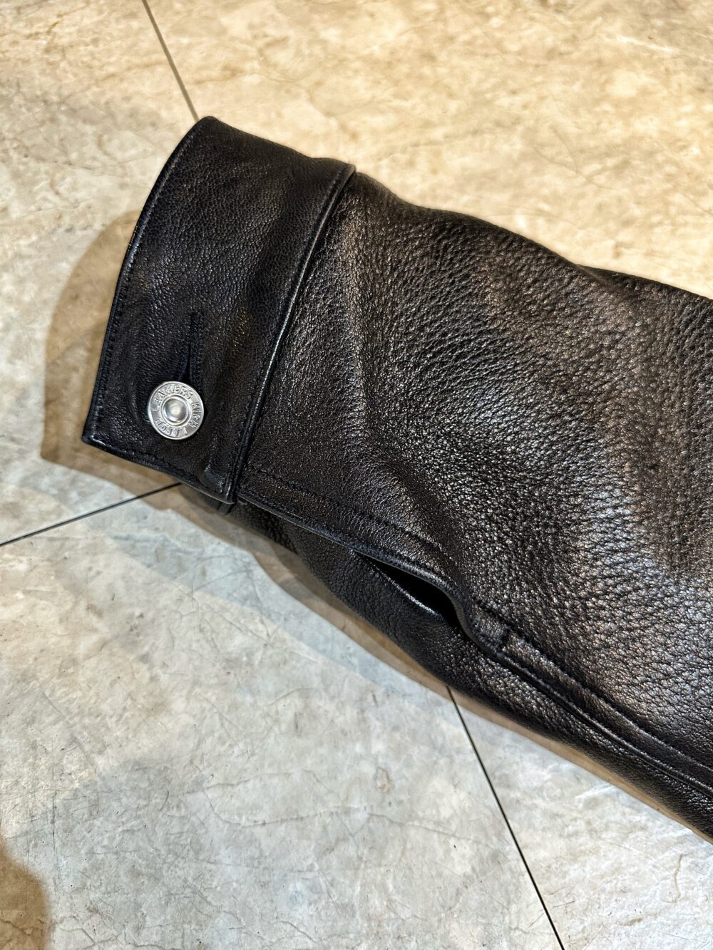袖は贅沢に一枚革を使用し、着込んだ際に入るシワの表情を最大限に活かします。
