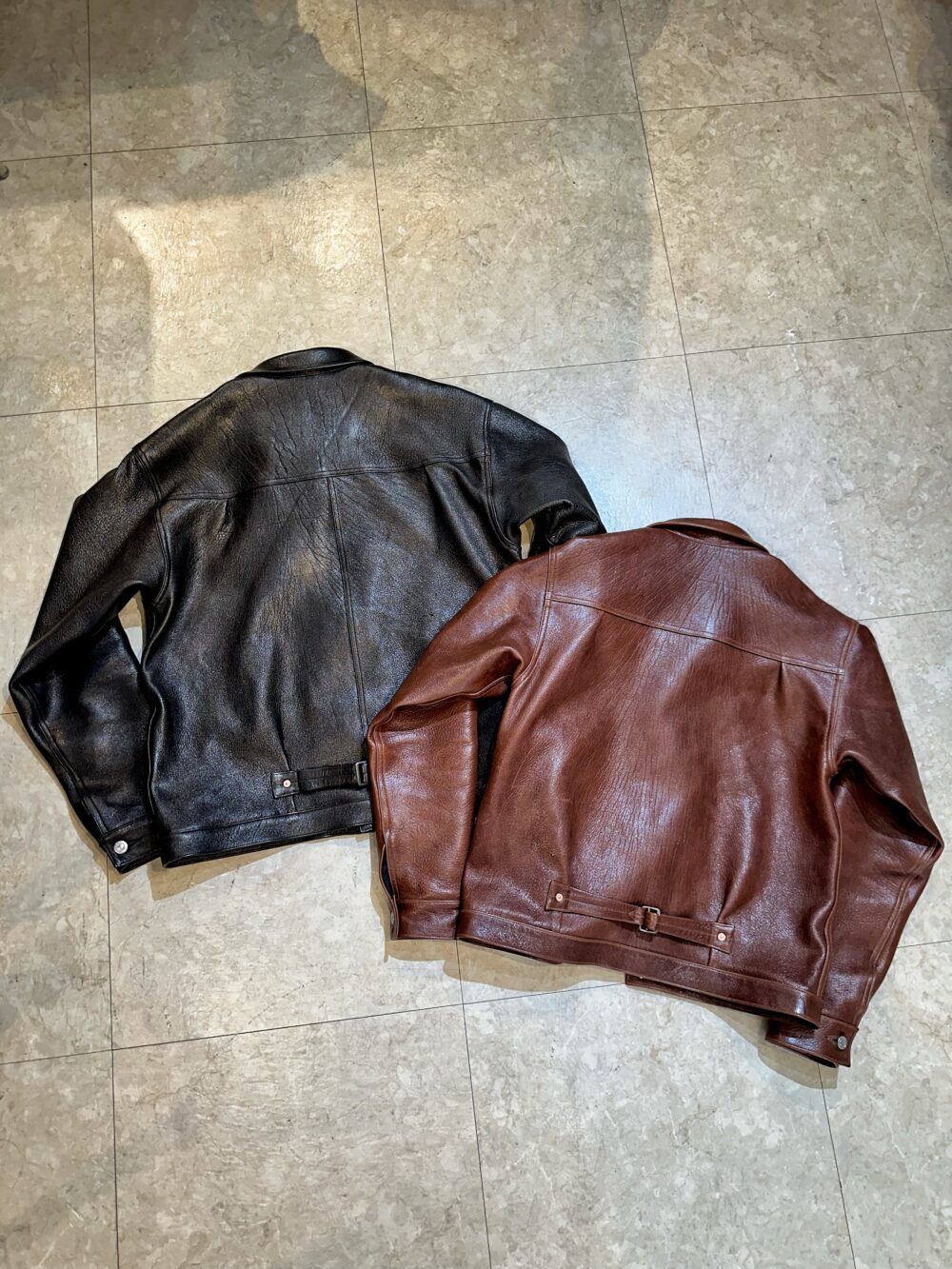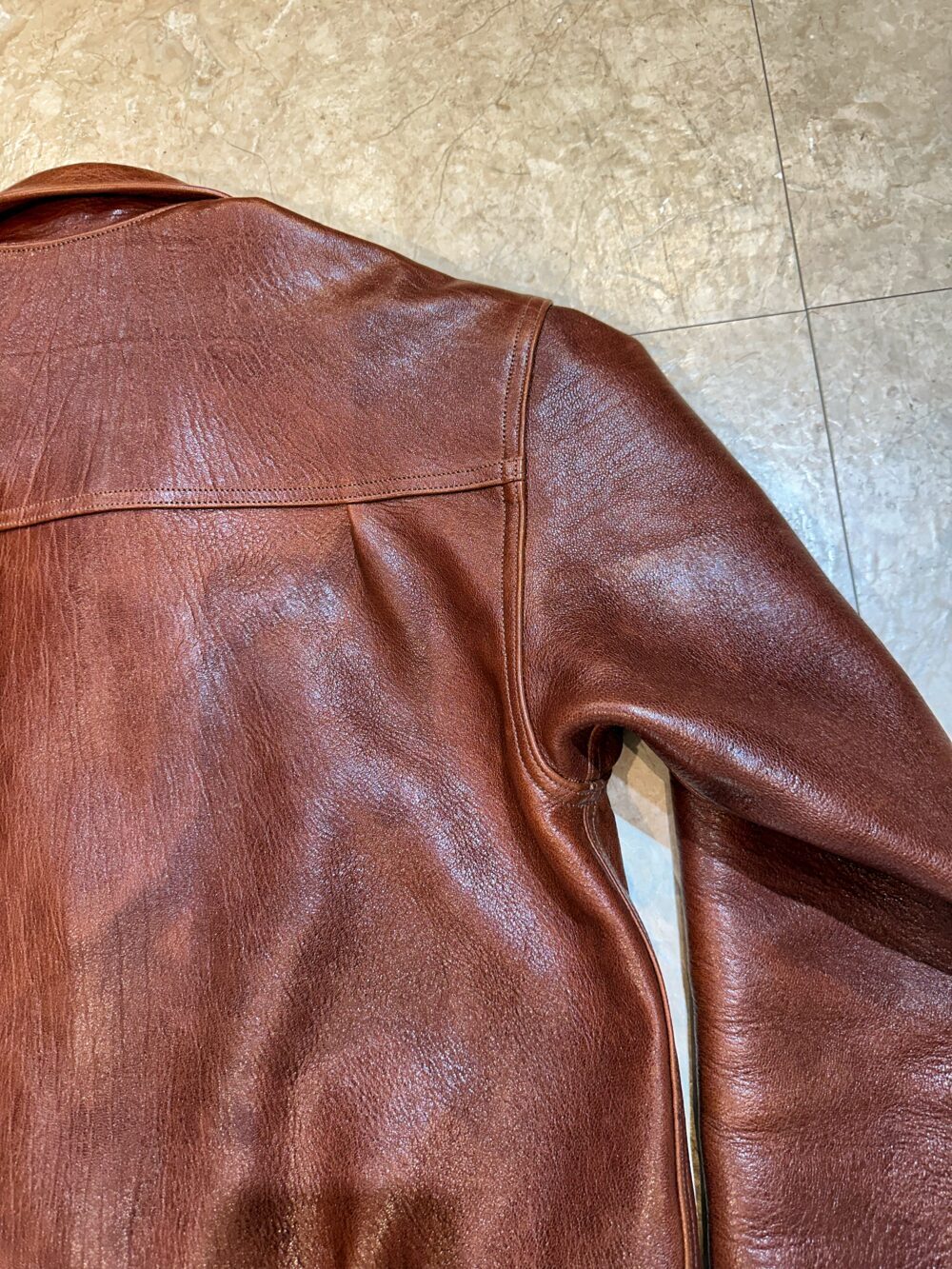 - 袖は贅沢な一枚革仕立てで、着込んだ時に刻まれるシワを楽しめる