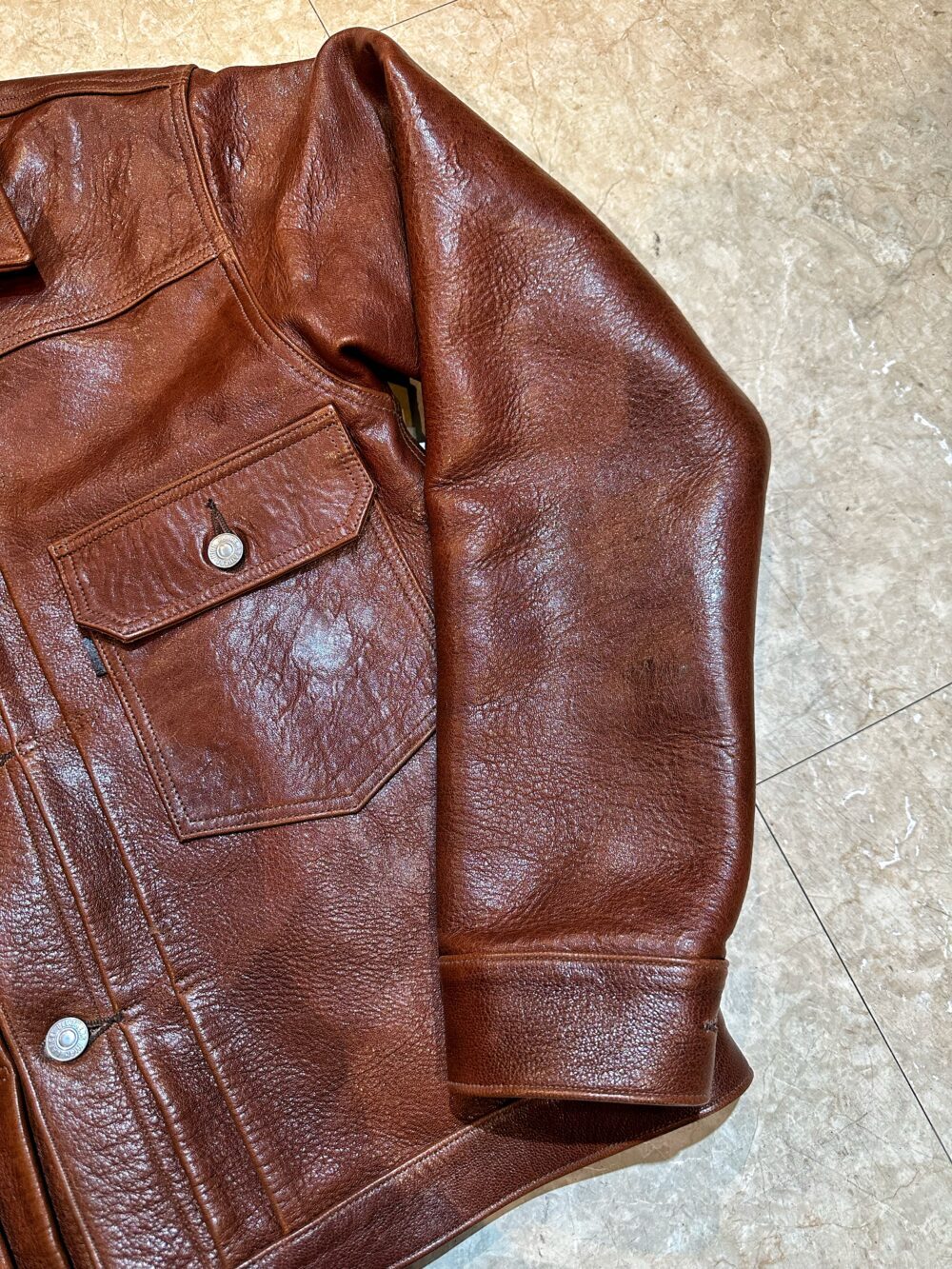 - 着込むほどに光沢が落ち着き、奥行きのある立体感が生まれる