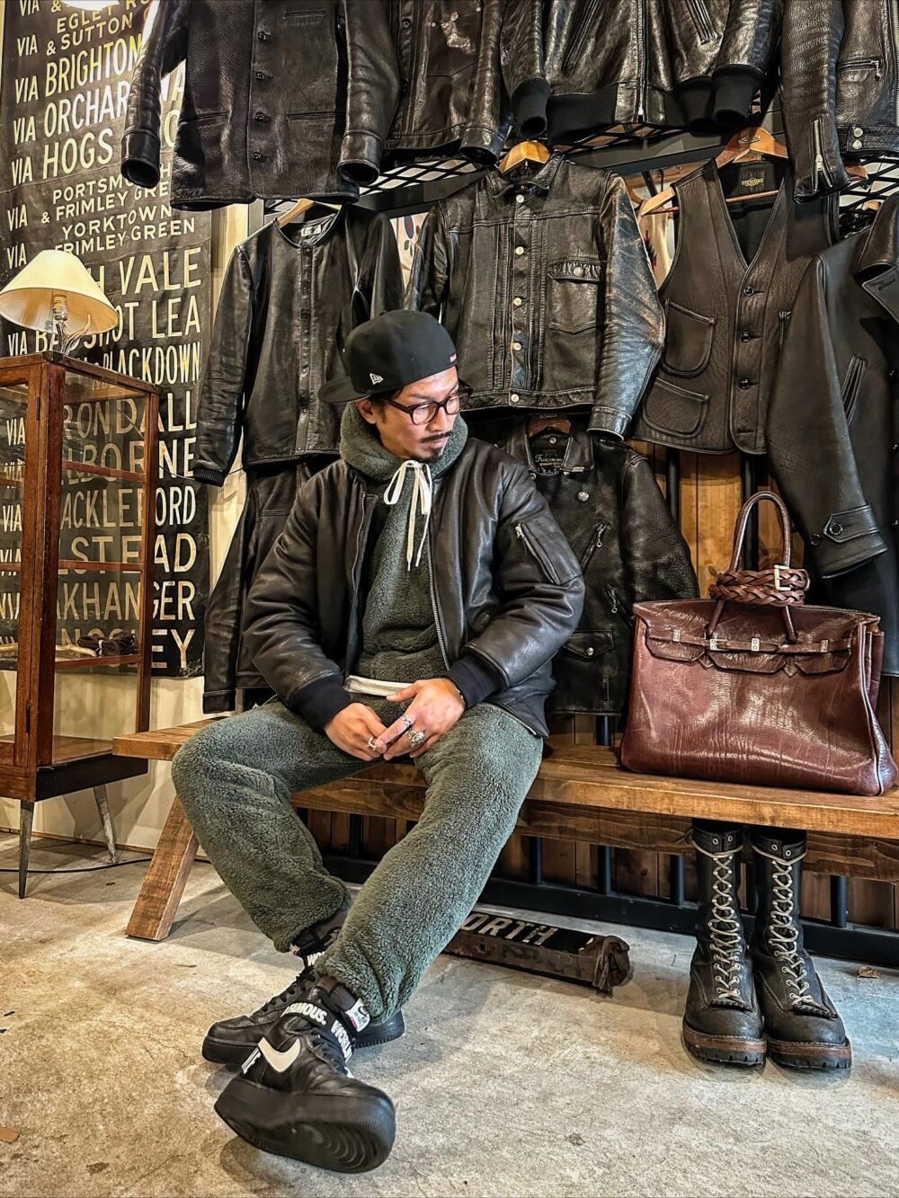 柔らかい素材感×レザーMA-1の無骨さのバランスがとても良いです😎